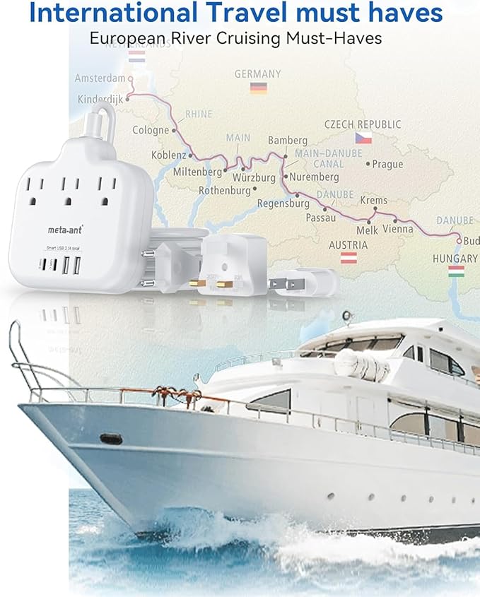 - 【Travel Cruise Must Haves】With only 4.07oz lightweight design(4.33" x 3.93" x 1.22"), portable size allows the meta-ant US to UK adapter easily put in your pocket, effectively saving the space of your suitcase, backpack and handbag; It has NO surge protection and is a cruise approved power adapter