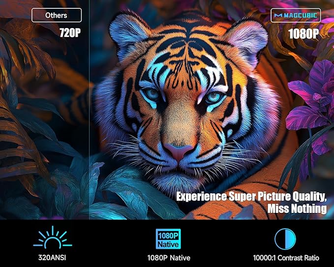 - Brightness for Any Occasion: With 320 ANSI lumens and a 10,000:1 contrast ratio, this proyector delivers bright, vivid images, perfect for outdoor movies or cozy bedrooms. Clear visuals even in dimly lit spaces ensure a reliable viewing experience every time