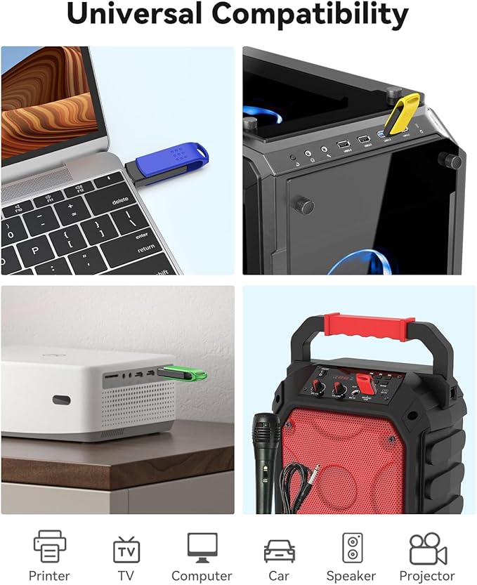 - Plug and Play: Just insert memory stick into your Laptop/Smart TVs/Car audio/Printers and start work or transfer files quickly