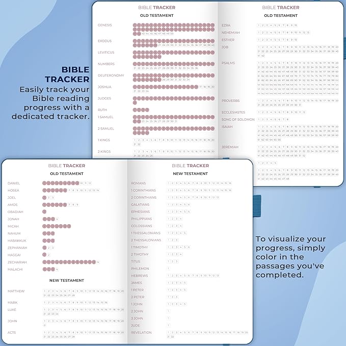 - MONITOR YOUR BIBLE READING PROGRESS – A dedicated reading tracker included in this notebook for Bible notes will help you track your reading progress easily. To use it, simply tick off each verse you complete.