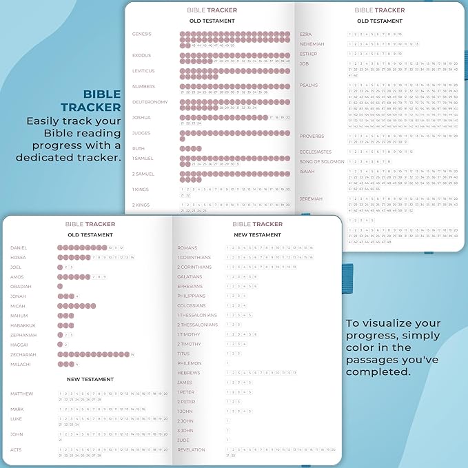 - MONITOR YOUR BIBLE READING PROGRESS – A dedicated reading tracker included in this notebook for Bible notes will help you track your reading progress easily. To use it, simply tick off each verse you complete.