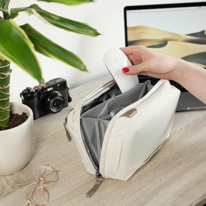 Peak Design Tech Pouch, Bone, Electronics Organizer for Travel or Everyday Carry, Origami-Style Storage, Cable Pass-Through, Weatherproof Recycled Nylon, Gear Carry Bag for Men and Women