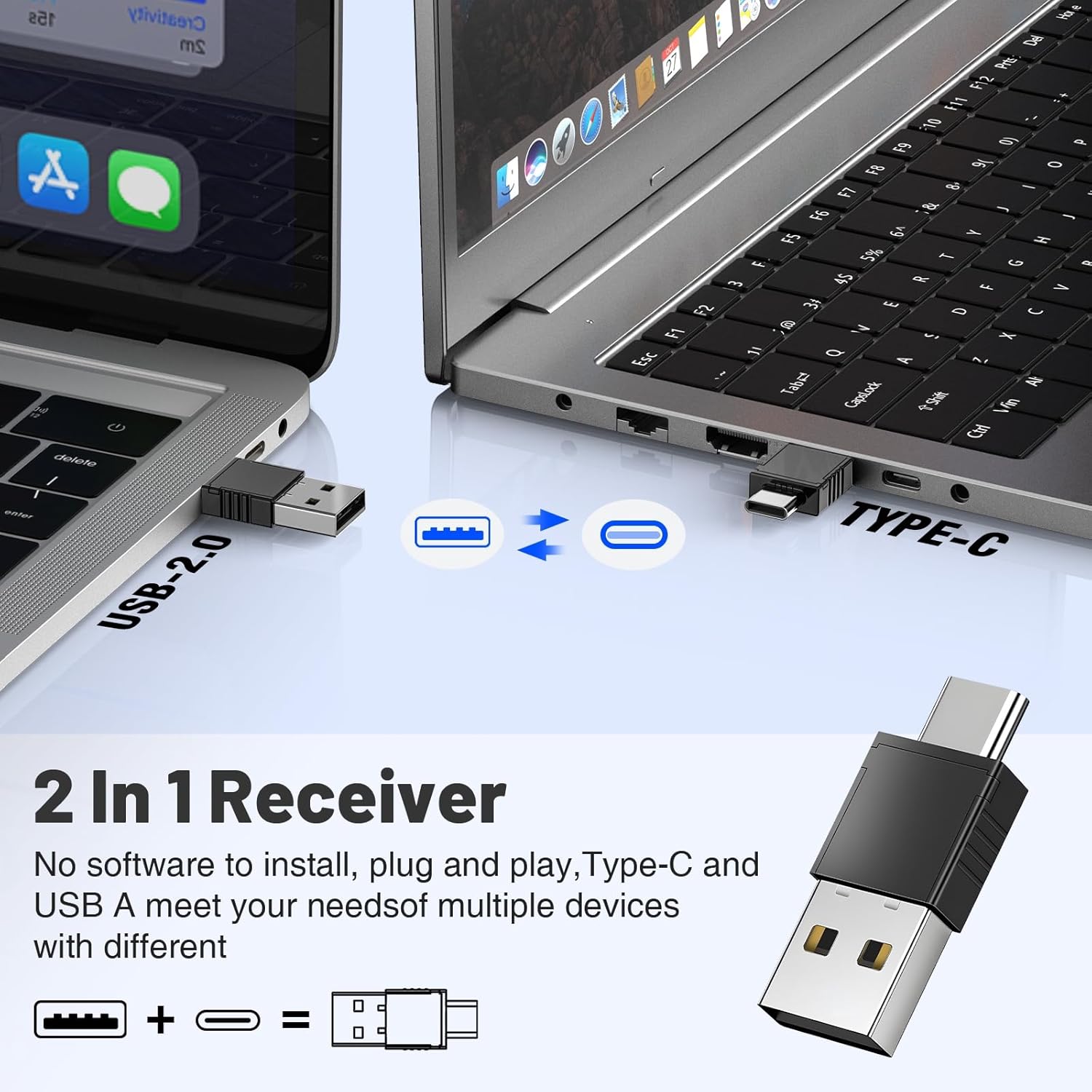 - 【WHAT YOU GET & CUSTOMER SERVICE】 1X Powerpoint Clicker; 1 X 2-in-1 USB Type C Receiver; 1X USB C Date Cable; 1X User Manual for Wireless Presenter. We are dedicated to providing customers with the best products and services. Please feel free to contact us if any problems