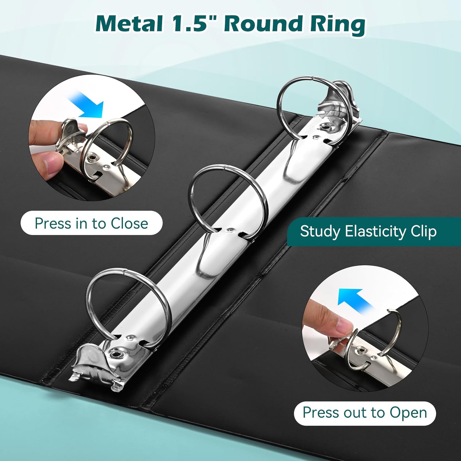 - 6 Pack 1.5" Black Binder: Come with 6 Bulk 1.5 inch binders with round ring, these binders are a great choice and money saving when planning for budgets, presentations, conferences and more