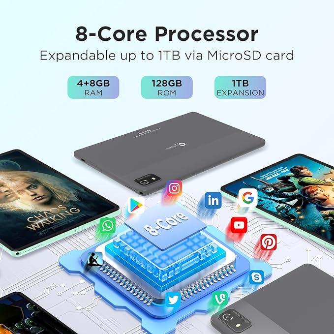 - 【Large storage + Widevine L1】The tablet comes with a large storage capacity and Widevine L1 support. With 12GB RAM (4GB physical + 8GB virtual extension) and 128GB ROM storage, expandable up to 1TB with TF card support. This tablet is perfect for both children's learning and adult entertainment needs
