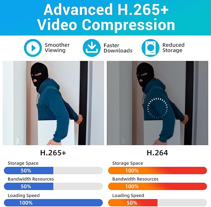 - 【Pre-installed 1TB HDD & H.265+ Coding】 The security-grade 1 TB HDD is designed to meet high workload demands of surveillance monitoring and minimizes the ambient noise & vibrations. H.265+ coding offers longer record time, saving up to 50% of storage space than H.265 systems.This DVR supports up to 8 cameras recording simultaneously to the built-in 1TB HDD. For more space, an extra 14TB HDD can be added via the SATA port.Say goodbye to monthly fees and embrace the freedom of free local storage.