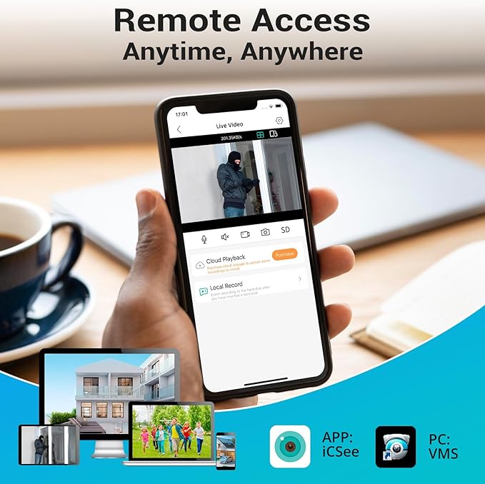 - 【Free Versatile Apps And Remote View】Explore rich features and functions in free Icsee App / VMS Client and download it from iOS or Android, Windows or Mac without monthly fees. Intuitive and easy-navigated software ensures local/remote access to your property. Enjoy peace of mind anytime, anywhere.Enjoy peace of mind knowing that your data is secure, and you won't be burdened by additional expenses as you safeguard what matters most.