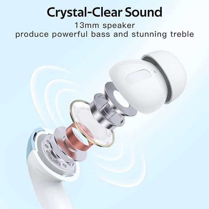 - Superior Clear Call and Immersive Stereo Sound: These music earphones with 13mm speakers and triple-layer composite diaphragms provide powerful bass, stunning treble and clear mids. These earbuds are designed for sound and music lovers. It can support the mono mode and twin stereo mode, you can share the earbuds with your friends and families. Each earbud has a build-in microphone for phone calls. CVC noise reduction can make others hear your voice very clearly while phone calls