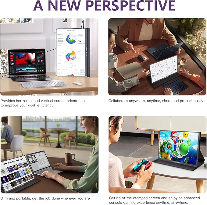 - Versatile Design with Complete Accessories: This monitor includes a built-in headphone jack and multiple connectivity options (compatible with Xbox, PS4/5, PC, smartphones, and more), catering to a wide range of use cases from entertainment to professional work. The package also includes a smart magnetic cover, power adapter, Type-C cables, and an HDMI to Mini HDMI cable, providing everything you need for a convenient setup.