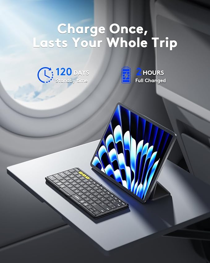 - 【Connect up to 3 Devices】 Pair up to 3 devices simultaneously with only 1 click to switch between them(such as ipad, smartphone, tablet or laptop). Large, well-spaced keys give your hands plenty of room to type comfortably. X-shaped scissor keys give you that perfect bounce. No lagging within 33 feet of operation distance. Provide you a seamless typing experience that will keep you focused on your work!