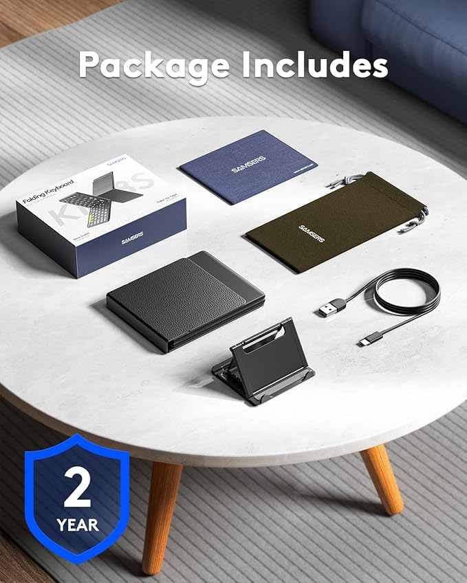 - 【Small Size & Big Convenience 】Just 9.1 ounces, the Samsers Portable Keyboard unfolds to the same size as a laptop keyboard (unfolded: 11”x 4.8” ).But folds up to palm size to fit into pockets / bags, taking up less space in your luggage! Package also includes a travel velvet pouch , phone holder and charge cable, organizes all your essentials(accessory) neatly.