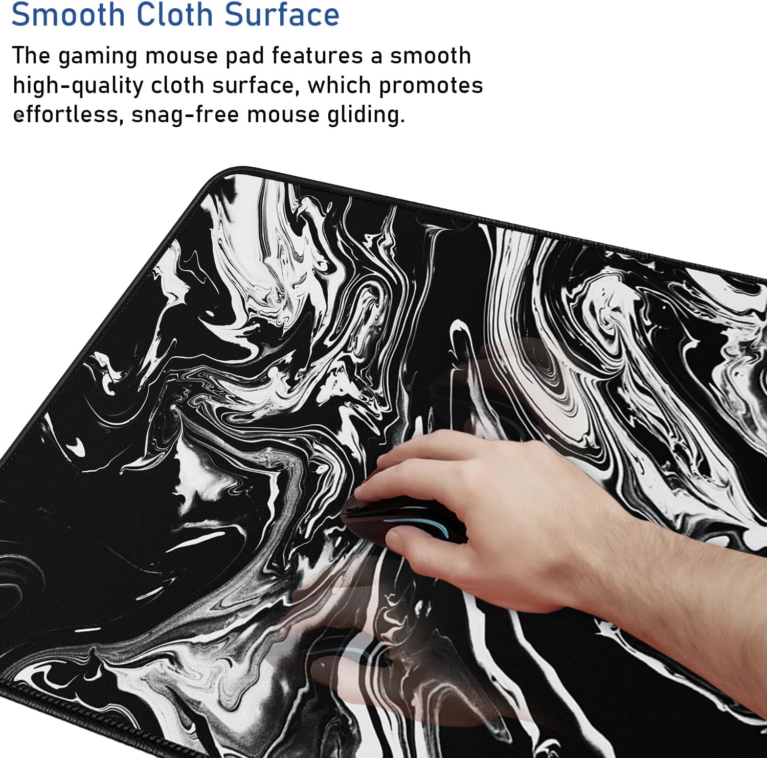 Large Extended Gaming Mouse Pad with Stitched Edges, Durable Non-Slip Natural Rubber Base, Waterproof Computer Keyboard Pad Mat for Esports Pros/Gamer/Desktop/Office/Home - Black White