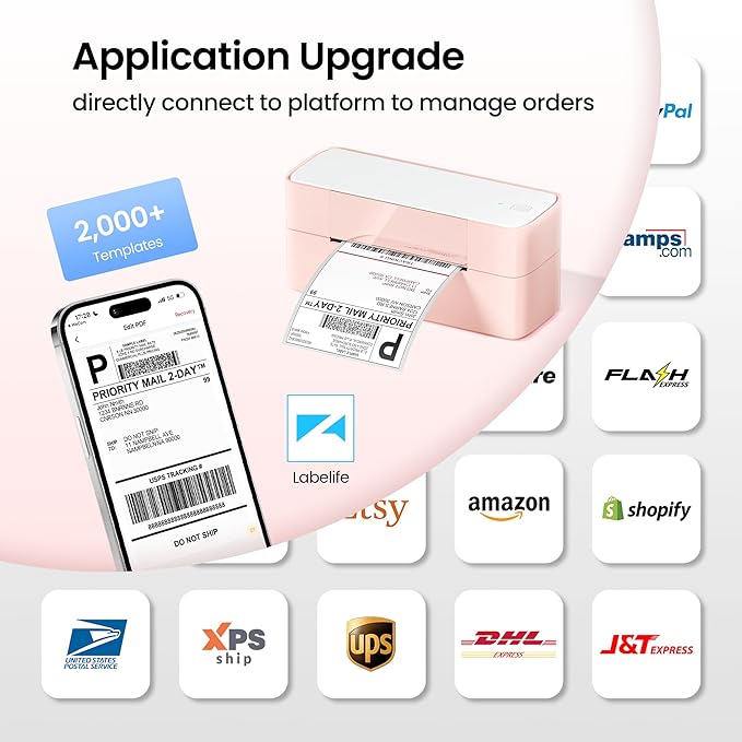 - Wide Application: This label printer for small business works with virtually all platforms like Amazon, Ebay, Shopify, USPS, UPS, Esty, PayPal, DHL, FedEx, etc. Besides, our desktop usps label printers prints labels from 1 to 4.6 inches wide for text, images, barcodes, QR codes, forms, holiday cards, and thank you cards. It has lots of icons and templates for both commercial and home use, boosting your efficiency
