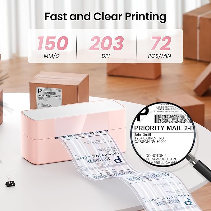 - Fast and Clear Printer for Small Business: The Itari 4x6 label printer uses advanced thermal direct printing technology, eliminating the expense of toner or ink. With a print speed of 150 mm/s, it can produce up to 72 sheets of 4x6 labels per minute. The 203 DPI resolution ensures high clarity and precision in your prints. This thermal printer is a time and money-saving solution for all your labeling needs