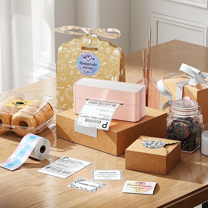 Itari Thermal Shipping Label Printer, 245BT Pink Thermal Label Printer 4x6, Bluetooth Address Label Printers for Business, Support iOS, Android, Windows, Amazon, Shopify, USPS