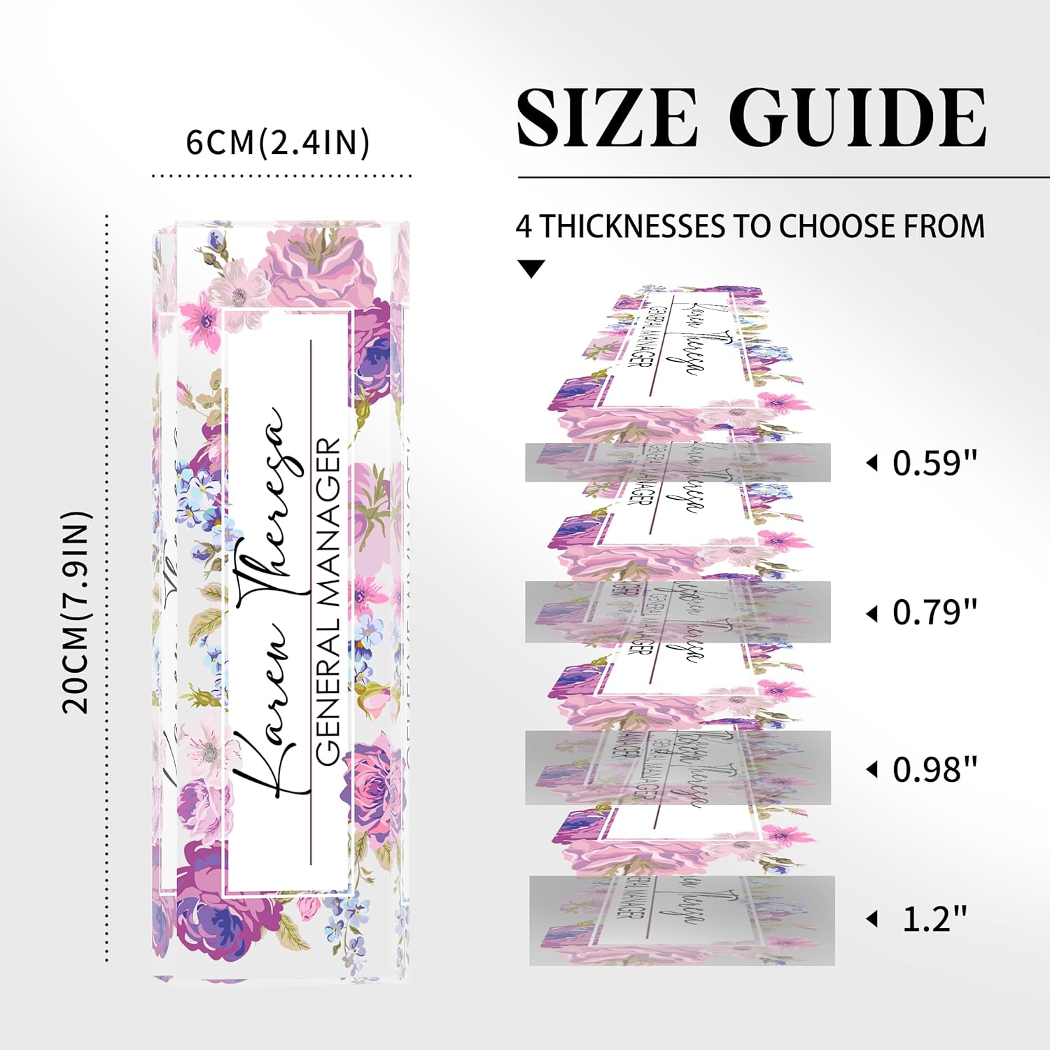 - 🍀 High Quality Acrylic - The name plate is made of high-quality transparent crystal acrylic blocks and printed on the back of the name plate using UV HD printing technology. The text and beautiful floral patterns present a 3D stereoscopic effect. The color is bright and will not fade, and can be used for a long time.