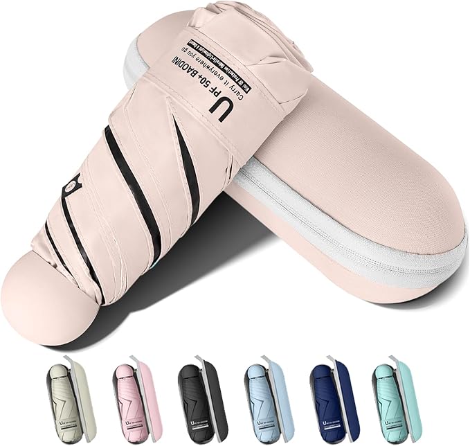 BAODINI Travel Essentials Mini Umbrella for Purse With Case Small Compact UV Sun Protection Lightweight Tiny Pocket Manual Open Close Umbrella for Women Kids and Men Fit Purse Backpack