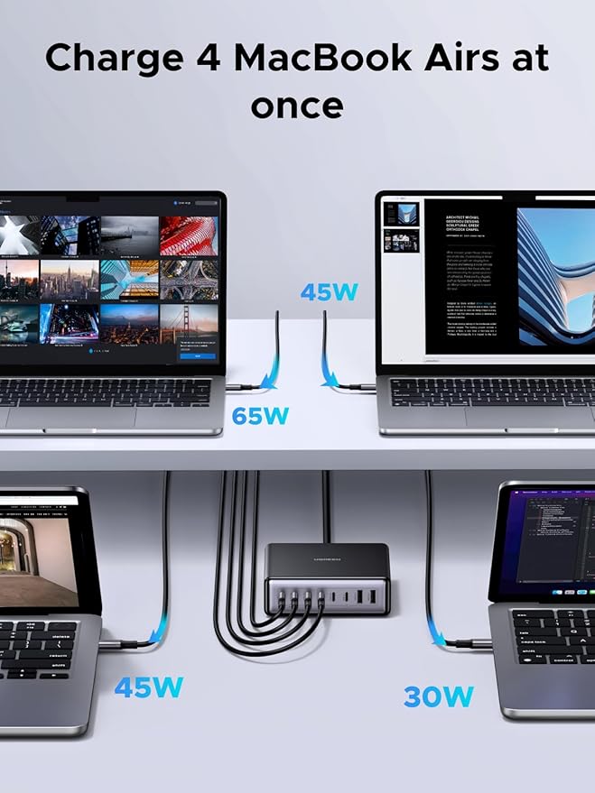 - Universal Compatibility: Built to charge 8 devices at the same time, this 200W charging station is compatible with MacBook Pro/Air, XPS 13/12, iPhone 17/16/15, Galaxy S25/S24/S23/S22/S21/S20, iPad Air/Pro, Pixel 10/9, Steam Deck, etc