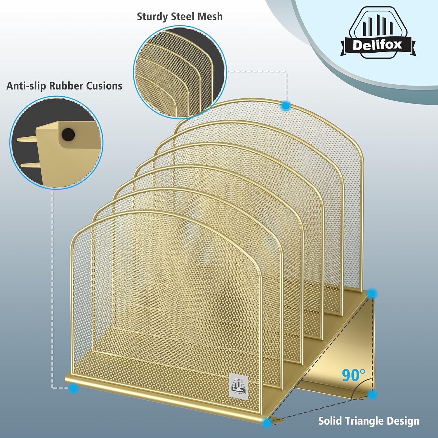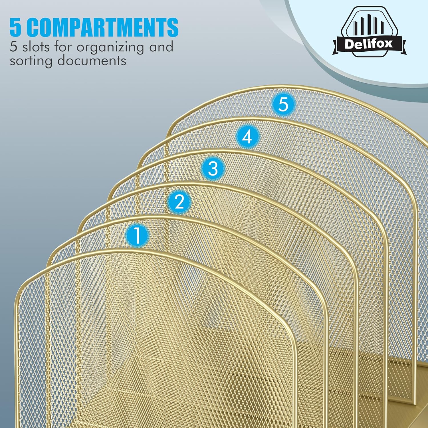 - ▶ SUFFICIENT SPACE FOR STORAGE. Delifox 5-compartment desktop file organizer is large enough to hold and classify many document or papers so as to eliminate worry of document run-off and keep track of files, folders, and other important papers