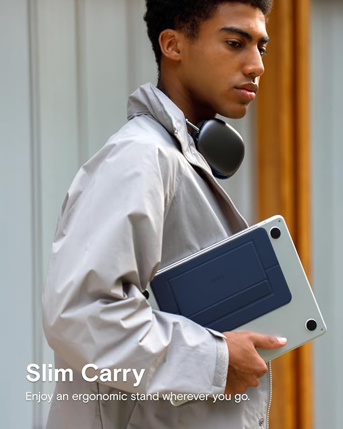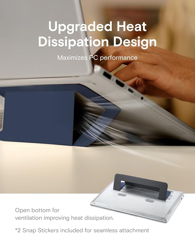 MOFT Laptop Stand for Desk, Adhesive Airflow Laptop Cooling Riser for Heat Dissipation with 2 Adjustable Viewing Angles, Foldable & Portable Computer Stand Compatible with Laptops 11"-16", Navy Blue