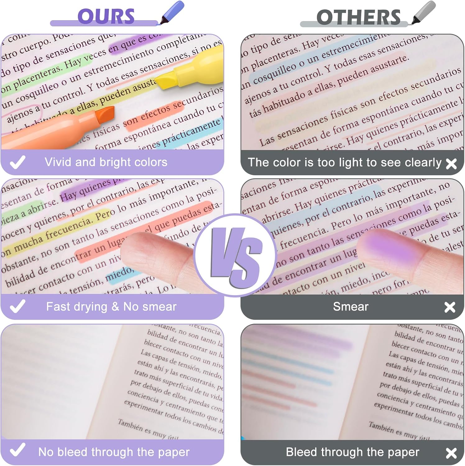 - Non Bleed & Quick-Drying Highlighter - Highlighter pens use quick-drying ink, making highlighted marks clearly visible without worrying about the ink staining your hands and your book. Even if you highlight on one side of the page, the other side is still completely readable, and there's no need to worry about ink bleeding through and affecting the readability of the page.