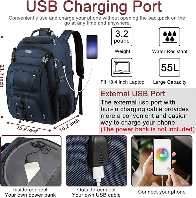 TSA Friendly Travel Laptop Backpack 18.4 inch XXXL Gaming Backpack Water-Repellent College Daypack Business Backpack with RFID Pockets & USB Port for Men