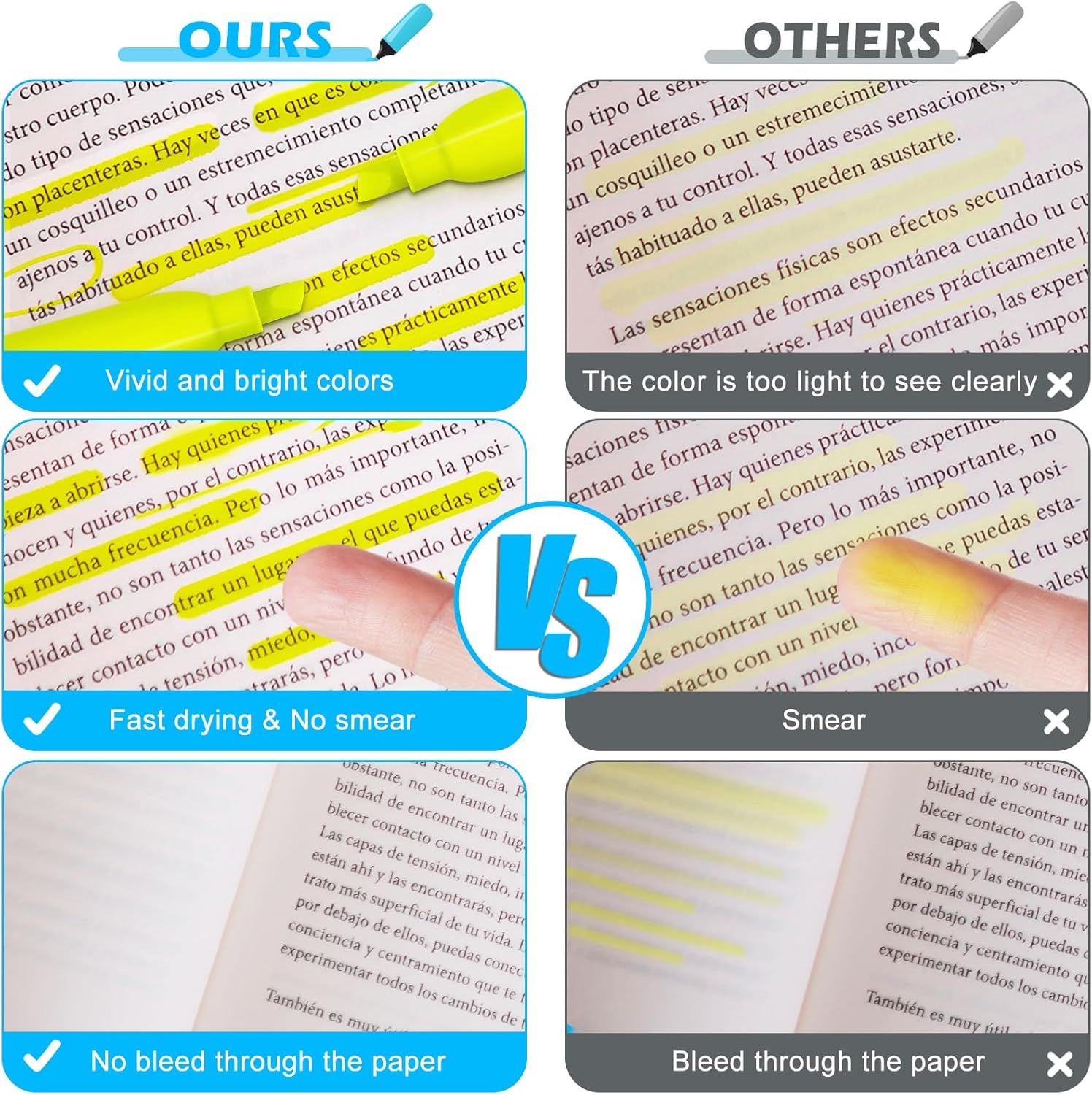 - Fast Drying & Durable: The highlighters pens use durable, quick-drying ink, allowing highlighted marks to be clearly visible without worrying about the ink staining your hands and books. Each highlighter is equipped with a pen cap to avoid ink from drying out for long-lasting use. Please remember to be sure after use keep the pen cap closed to prevent the ink from drying out.