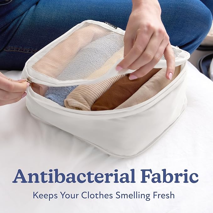 - Fabric - Made from fabric thatβs infused with silver ions, these packing cubes for travel will always smell fresh; The breathable mesh design keeps clothing fresh and compact