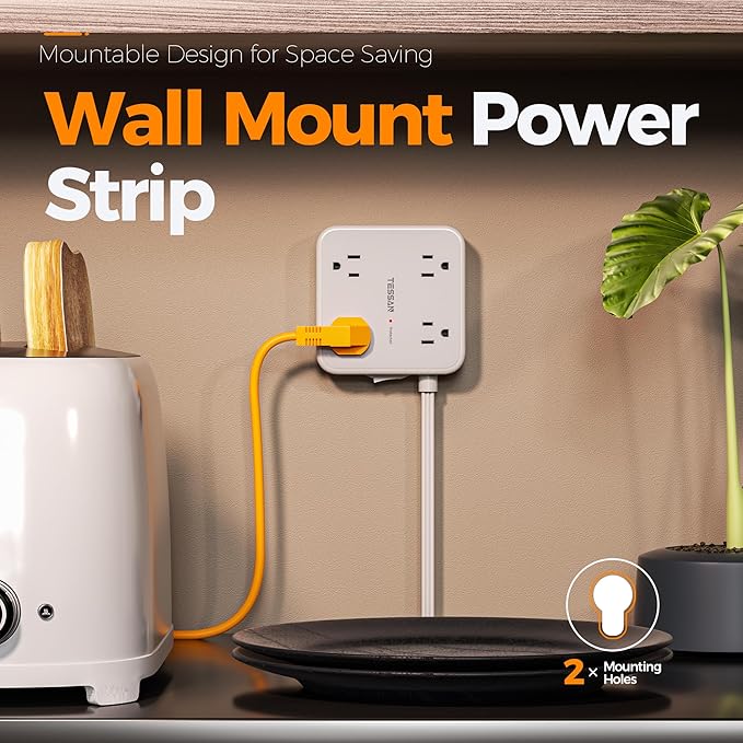 - Mountable Power Strip: 2 mounting holes design allow flat extension cord securely installed in various applications, such as wall mounts, floor mounts, under counters and more; 4 rubber feet at the bottom efficiently keep it from slipping and sliding
