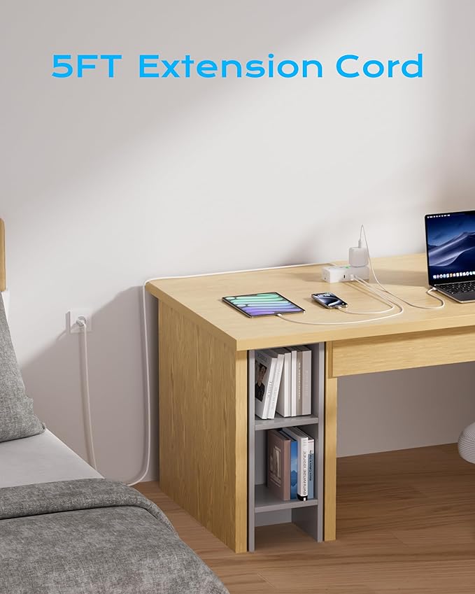 - 5ft Extension Cord, compact size, lightweight, portable to carry, suitable for a business trip and travel