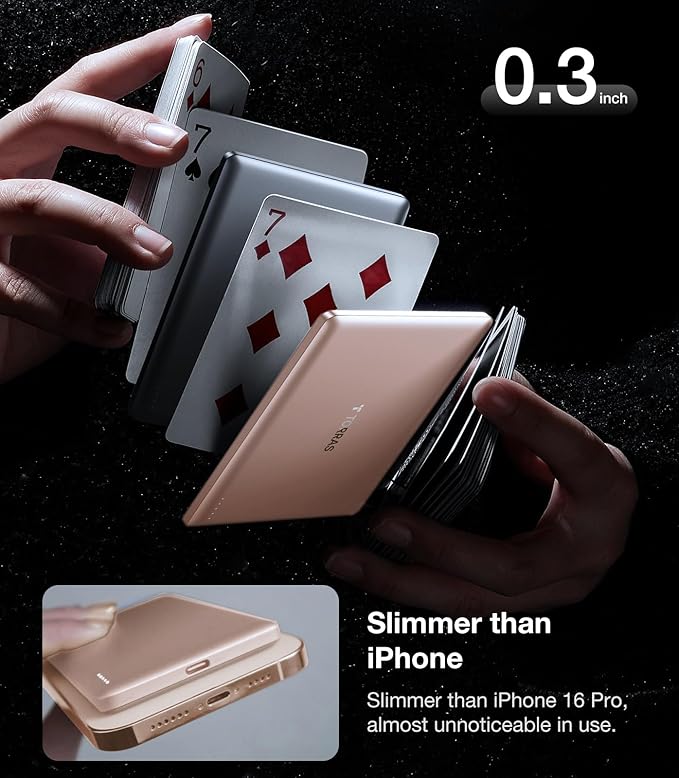 TORRAS MiniMag Power Bank, Ultra Slim 5,000mAh Wireless Portable Charger with USB-C Cable, Fast Charging iPhone Air MagSafe Battery Pack, Compatible Charger for iPhone 17/16/15/14/13/12, Desert Gold
