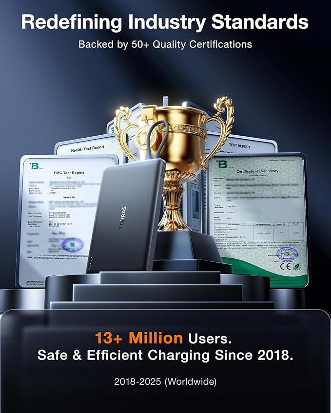 - 12 Years of Innovation:Backed by 1300+ patents and 40+ international awards, TORRAS has served 600+ million users in 148+ countries and regions, with up to 99.98% customer happiness.About After-sales:TORRAS magnetic accessories, MiniMag Power Bank has FCC, UL, TUV, DOE, CEC, UN, RoHS certifications, comes with 18 months warranty, 7×24 lifetime professional support.We're always committed a satisfactory solution if you have any problems.