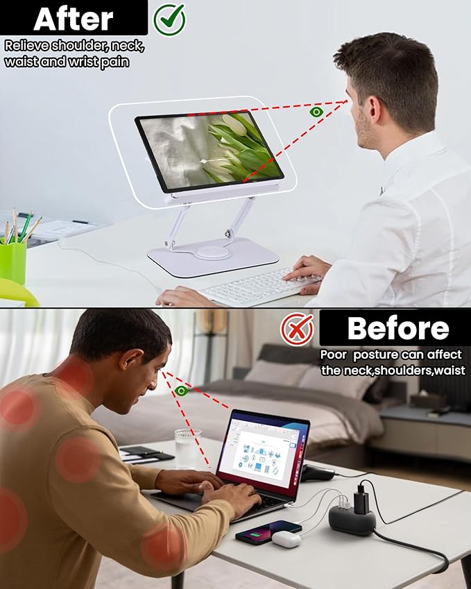 - 360° Rotating Book Stand: Our 360° rotating book holder allows for height and angle adjustments to provide the optimal reading or viewing experience. Whether studying, cooking, or relaxing with a book, this book stand offers comfort and convenience