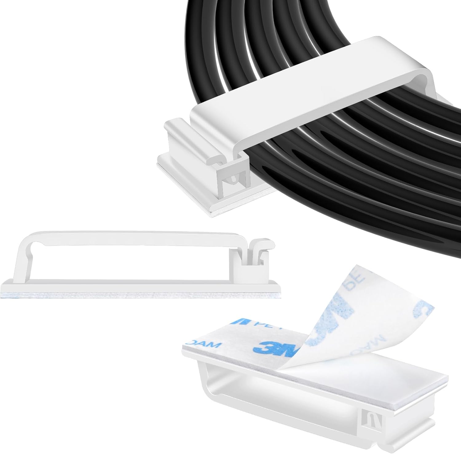 XHF 40 PCS Self Adhesive Cable Clips(XL) White,Wire Clips Cable Management Wire Organizer Cord Holder for Under Desk, Car, Wall, TV PC Ethernet Cable