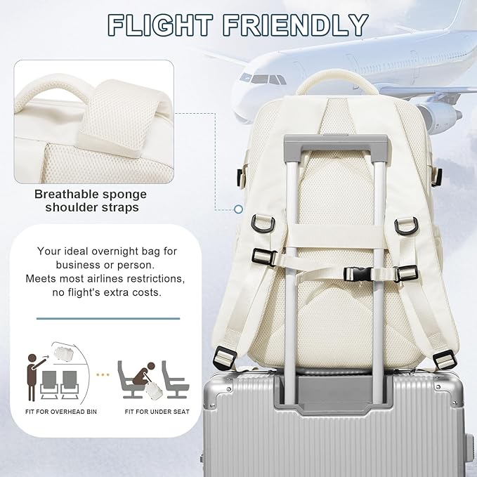 VECAVE Carry On Backpack for Women, Airline Approved Large Travel Backpack Flight Approved, Waterproof 14 Inch Laptop Backpack Business Work Backpacks Bag Men Mochila De Viaje Beige.