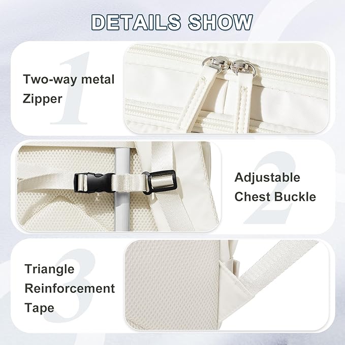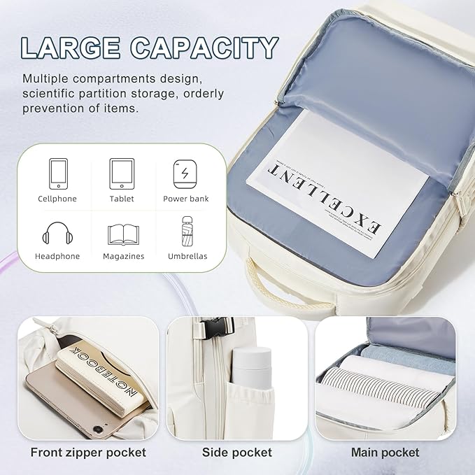 - Carry-On Backpack for Women: The backpack measures 11.42×5.12×17.13 inches (approx. 29×13×43.5 cm) and complies with most airline carry-on size restrictions (please verify your flight’s specific requirements). It fits under the airplane seat, saving you checked baggage fees, making it the perfect companion for travel and business trips.