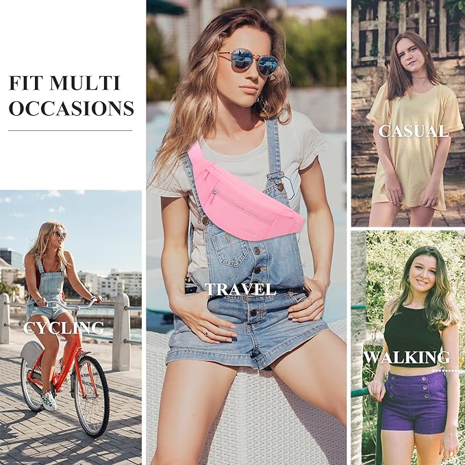 - Changeable Style Fanny Pack for Women,Many Ways to Wear — Since the comfortable long strap is widely adjustable for most waist size(20” - 50”).There are many ways to wear this fanny pack - (1)As a Waist Belt Bag:Wear it in front of your waist (2)As a Hip Pack:Back on your hip (3)As a Shoulder Fanny Pack or a Sling Fanny Pack:Slant across your chest or over You shoulder.Perfect for various occasions.
