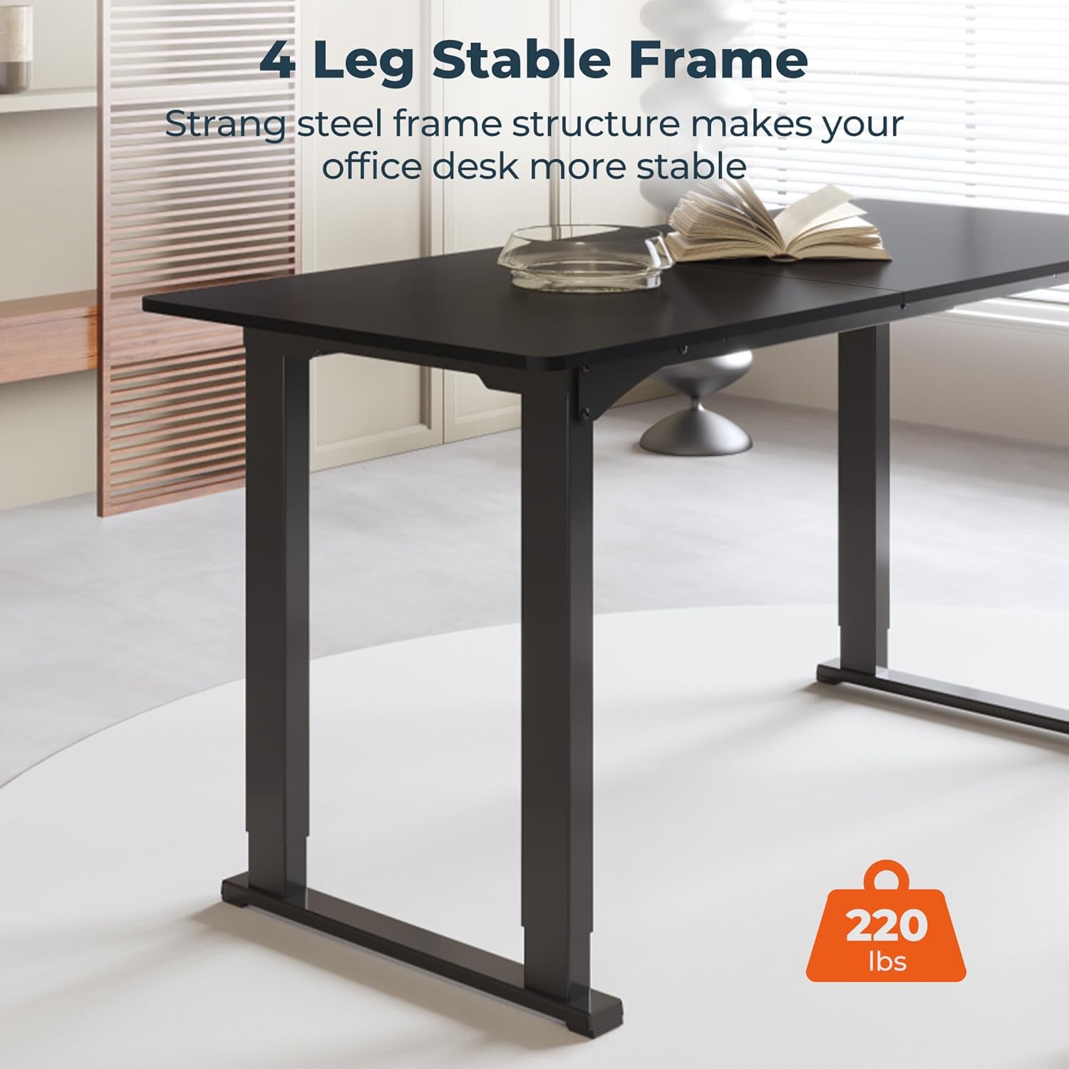 - Solid Build for Unmatched Stability: Our adjustable desk, fortified by a robust four-legged structure, exemplifies durability. This framework significantly bolsters stability, curbs unwanted movement, and is capable of supporting substantial loads up to 220lbs, ensuring a secure and well-organized computer workstation that highlights the fusion of design and longevity.