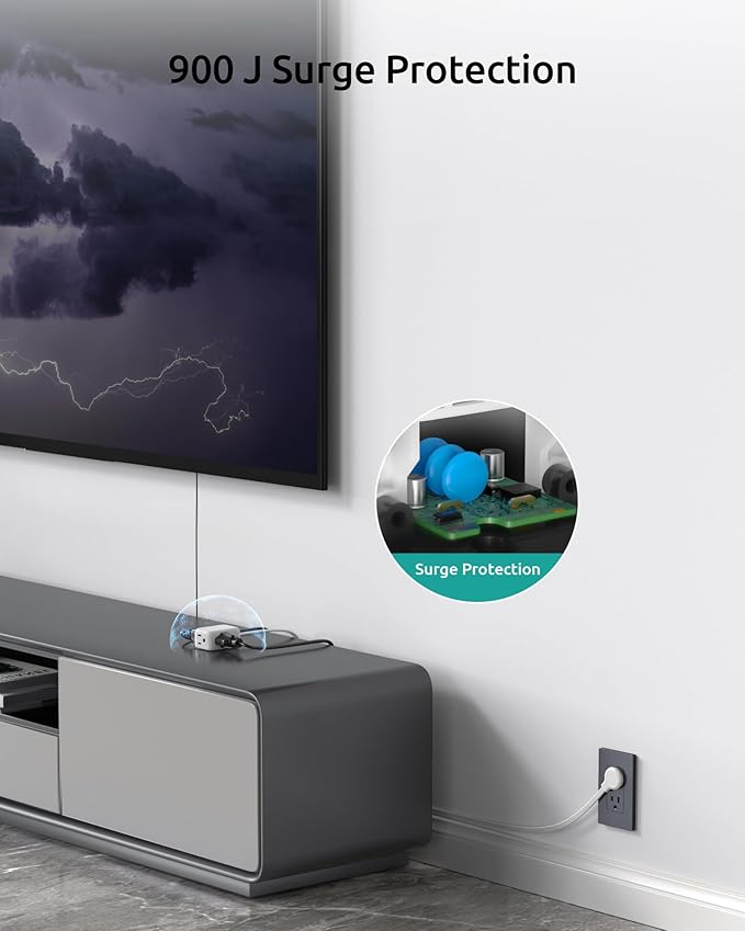 - Surge Protector Extension Cord: ETL listed, convert one wall outlet into three grounded 3 prong outlets with 900j surge protection, protect your home kitchen office dorm room equipment from voltage fluctuations, surges, and spikes. 16 awg 3 prong extension cord for home office small apartment essentials
