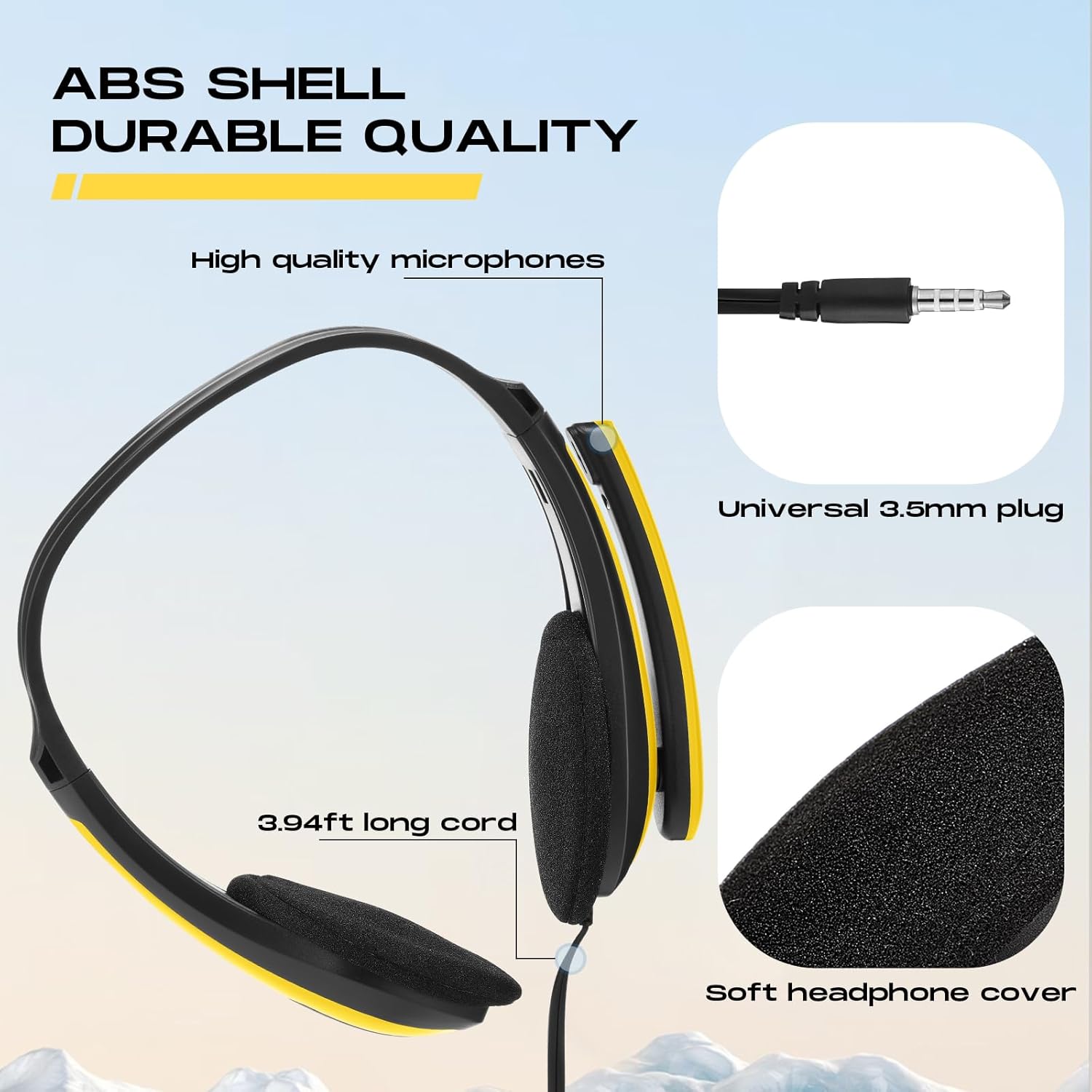 - 20 Pcs Classroom Headphones Bulk: you will receive 20 packs of yellow headphones bulk with mic, sufficient to use as class set of headphones for students to meet demand; Durable, functional class set headphones with a microphone are becoming increasingly important in today's technology enhanced classrooms, headphones for students are not disposable earphones, which can be applied repeatedly for a long time