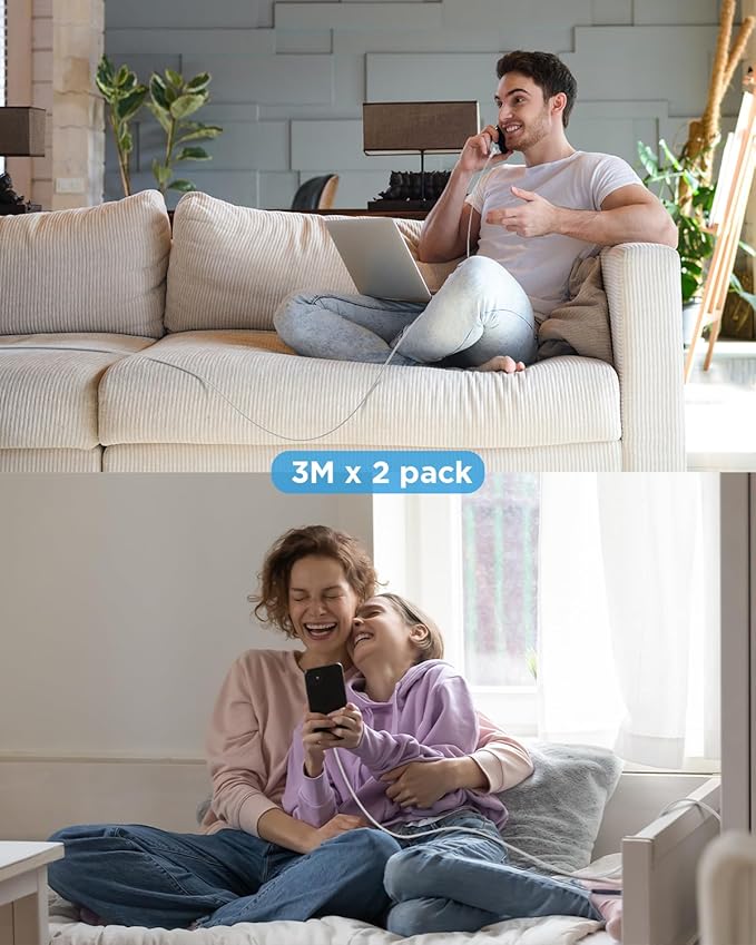 Aioneus USB C Cable, 2 Pack USBC Cable 10ft Fast Charging Cable 3A Type C Cable for iPhone 16 15 Series Samsung Galaxy S24 S23 S22 S21 S20 A14 A15 A20 A32 A42 A53 A54, Tablet, Pixel, LG, Moto, PS5