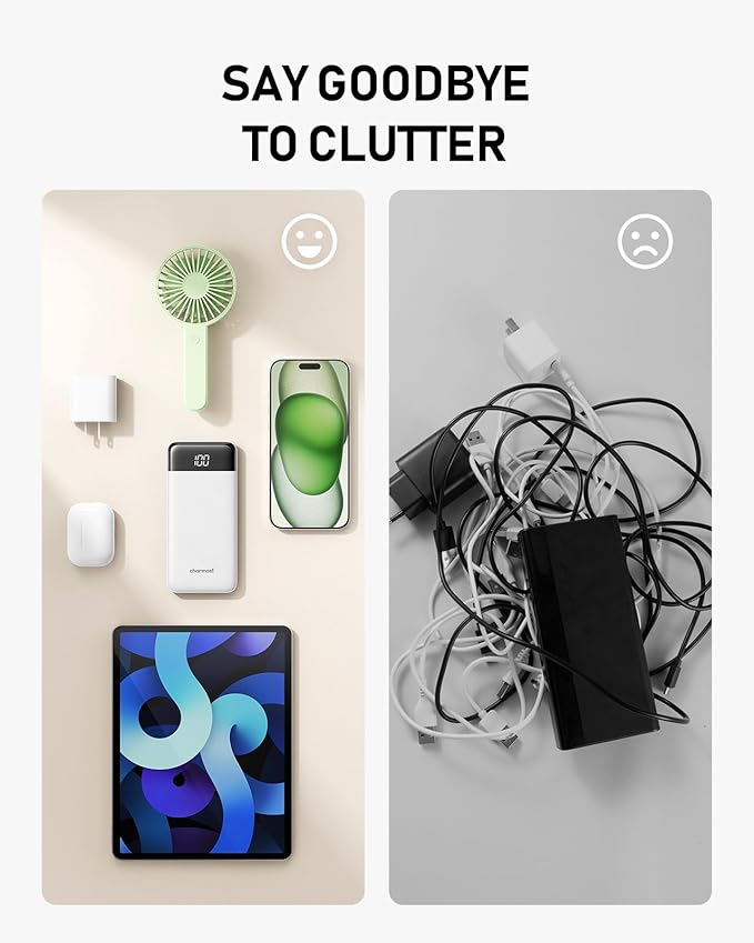 - šćTwo-way USB-C high speed chargingćPower bank comes with a USB-C IN&OUT port that supports 15W high-speed charging and recharging, ensuring both your battery pack and your devices are charged quickly