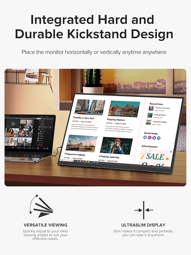 - 120 Hz and FreeSync: This large portable monitor is good for improving gaming experiences through 120 Hz and FreeSync; A fast 120 Hz provides a smooth frame loading in various programs; Also, you can enjoy realistic gameplay with less screen stuttering and motion blur. With FreeSync technology, gamers can enjoy smooth, clear movement in fast-paced games