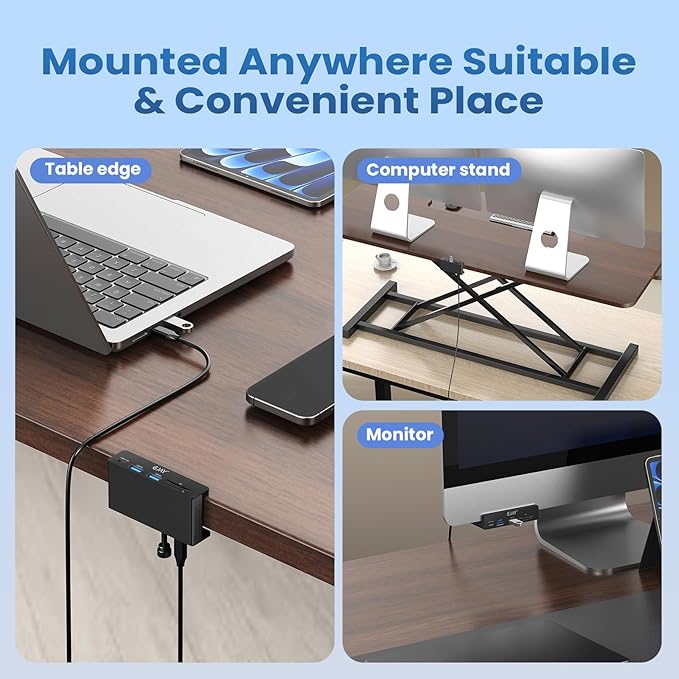 EJAY 5Ports USB3.0 HUB Alu Splitter Desktop Docking with TF&SD Card Reader for Desk/Monitors Clipping with Extra Power Supply Port,59inches Data & 39inches Power Cable-5Gbps(JK-2A1CTS-BK)