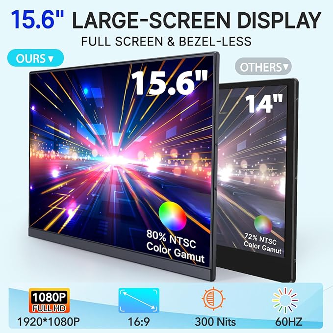 - 【Wide Compatibility & Reliable Support】Portable monitor for laptop is compatible with Windows/Mac OS/Chrome/Linux. such as laptops, desktops, mini PCs, game consoles and some smartphones (Which have the full-featured Type-C port and support micro-computer mode).If you encounter connection problems or other situations, please contact our after-sales team directly, we will provide you with satisfactory solutions.
