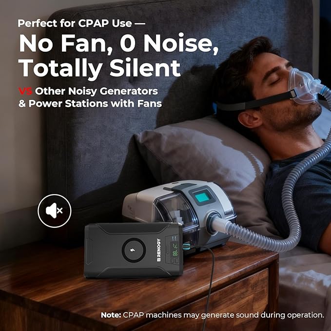 - 【Trusted, Safe, & Reliable】Renogy 2025 CPAP battery enhances our highly-rated model for top reliability. Backed by a 12-month warranty, it features a complete cable set, built-in SOS light (4 modes), smart display, and advanced BMS protection for safety.