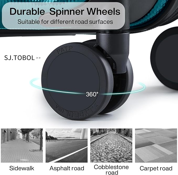 - 【High Quality Accessories】SJ . TOBOL durable spinner wheels,It is composed of precision shaft center and thickened TPE wheel skin, which is very wear-resistant,quieter and has strong bearing capacity, It is applicable to different roads such as cobblestone road and carpet road. Smooth and durable 5-strand reinforced explosion-proof zipper reverse coil prevents burst zipper. Travel approved combination lock is safe and convenient. Ergonomics telescopic handle with multi-steps adjustment.