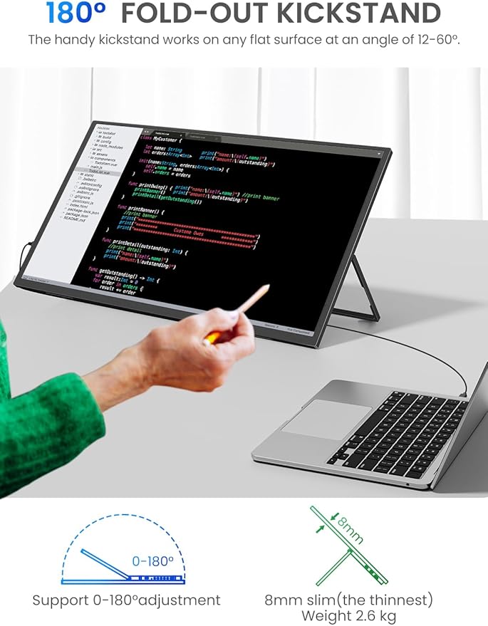 - [Adjustable Stand & VESA Mount] – Flexible design with 180° kickstand and VESA compatibility allows stable use at home, in the office, or on the move.