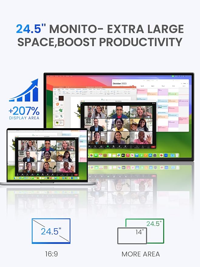- [24.5" 2K QHD Large Gaming Monitor] – Expansive 2560×1440 QHD display delivers crystal-clear visuals, ideal as a second screen for laptops, MacBook, or as a desktop replacement for remote work and mobile setups.