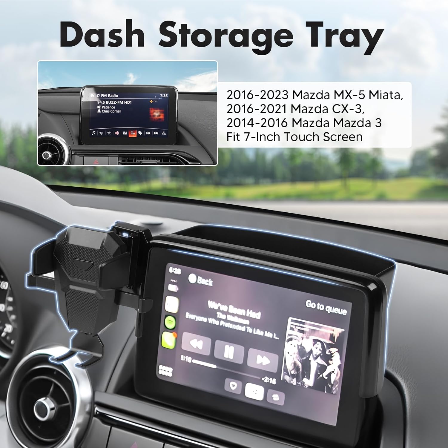 - Dash Organizer for Mazda MX5 Miata/CX3/Mazda3: Our dashboard center console organizer is fits for 2016-2023 Mazda MX5 Miata/2016-2021 CX3/2014-2016 Mazda3 (Fit 7" Touch Screen). And the phone holder compatible with iPhone and Android all smartphones.